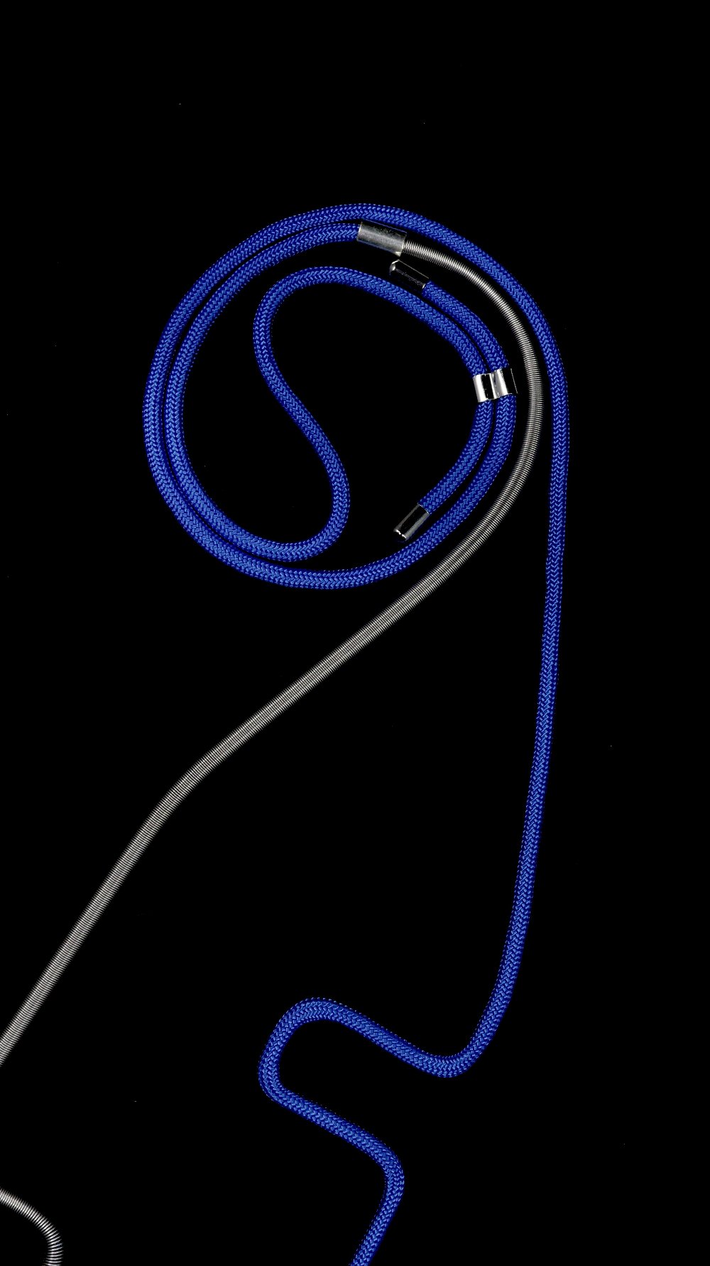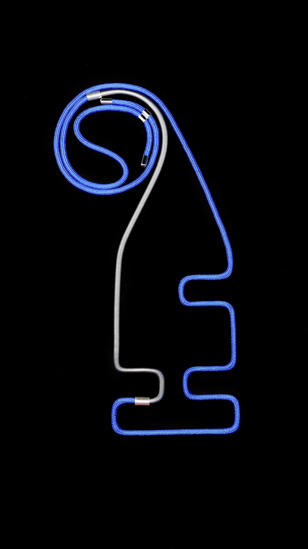 Pendants are made of steel rods, and the flexible parts are made of titanium ball chains covered with a nylon-based textile. Metallic parts are often brass-plated with silver, gold, or have an oxidized (black) finish, and sometimes titanium. Earrings have hypoallergenic studs.