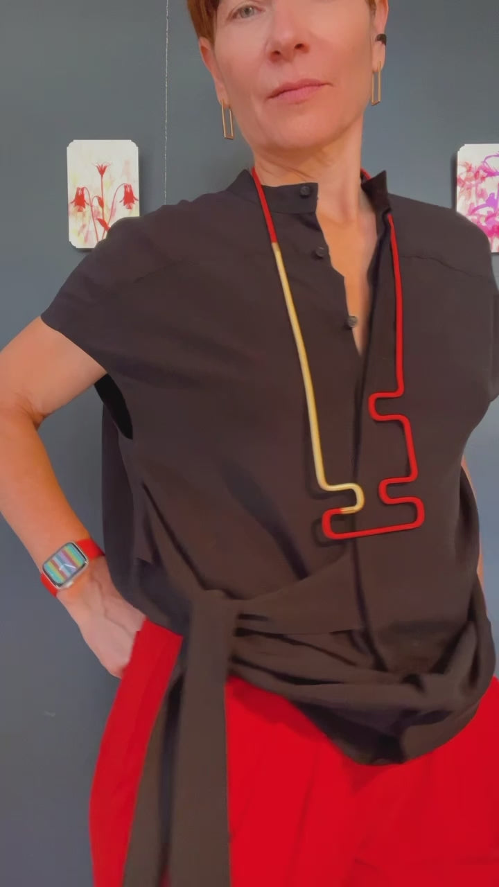 This monochrome necklace can be personalized with one color and 2 different finishes: A silver finish that pairs well with cool colors, and a gold finish that enhances warm colors.