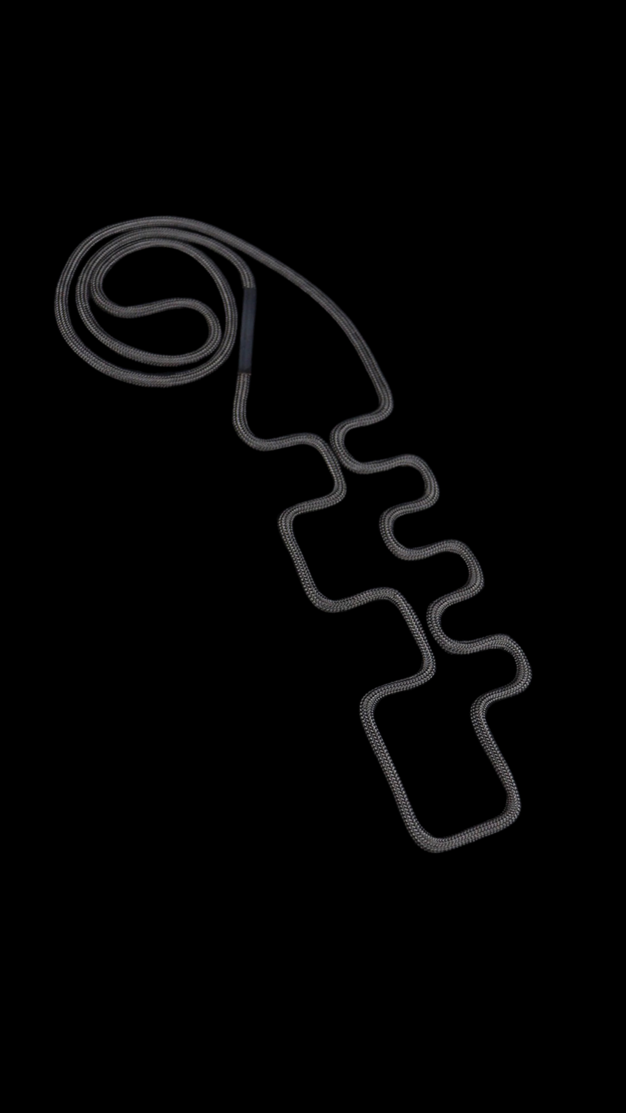This monochrome necklace can be contrasted with three different finishes: a black finish that complements light colors, a silver finish that pairs well with cool colors, and a gold finish that enhances warm colors.