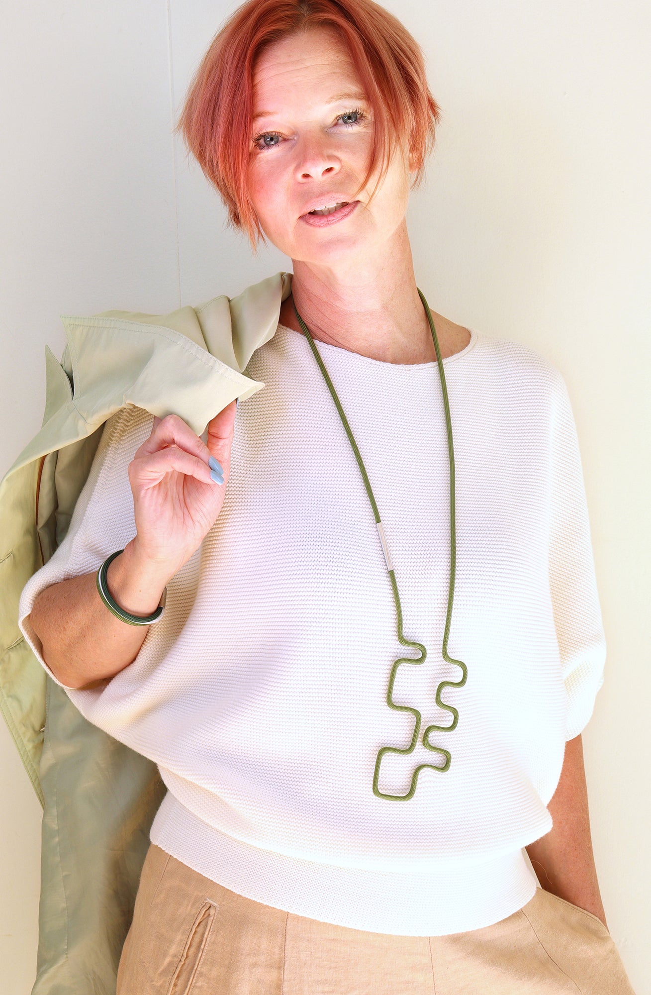 Linea 41 Mid-Century Necklace is a bold, modern, and minimalist piece that is the most artistic shape of the collection.