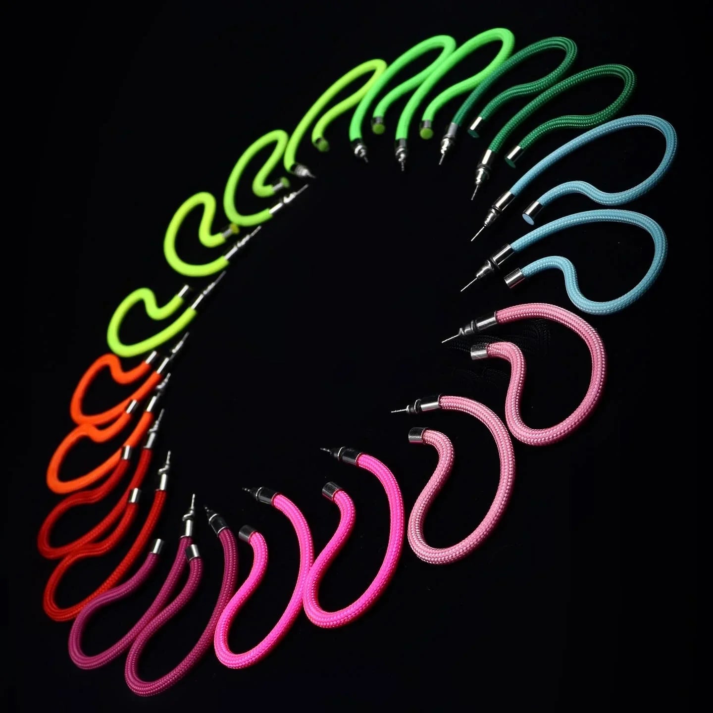 Every piece is handmade and can be personalized to your taste. With 50 shapes to choose from and 27 colors, the collection aims to unlock your creative spirit and enhance your daily outfits. Its geometric aspect, coupled with unconventional materials and contrasting colors, creates an appealing, never-before-seen art piece.