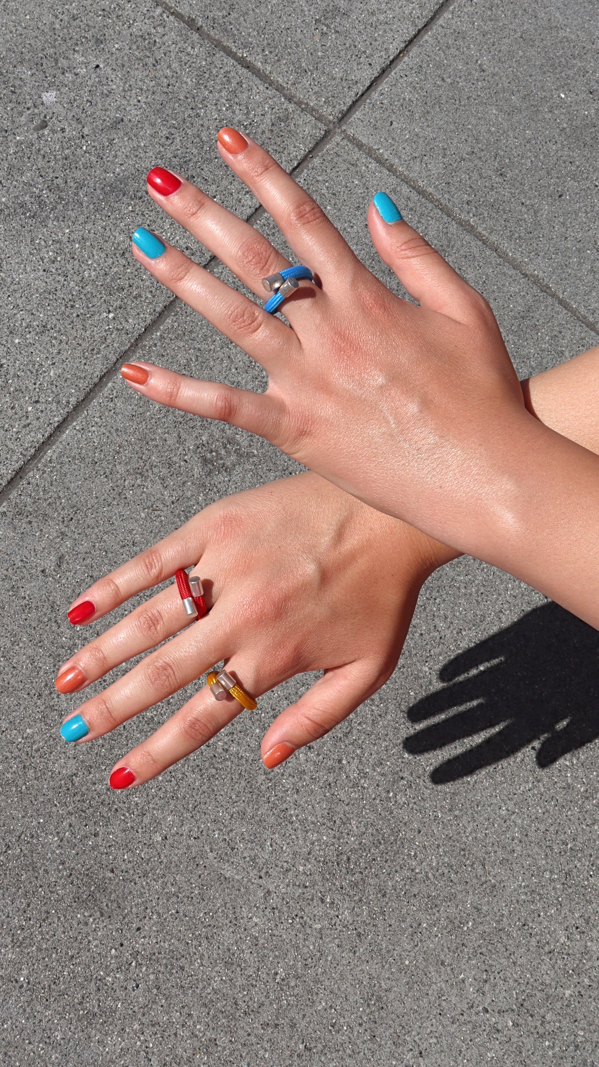 Every piece is handmade and can be personalized to your taste. With 50 shapes to choose from and 27 colors, the collection aims to unlock your creative spirit and enhance your daily outfits. Its geometric aspect, coupled with unconventional materials and contrasting colors, creates an appealing, never-before-seen art piece.